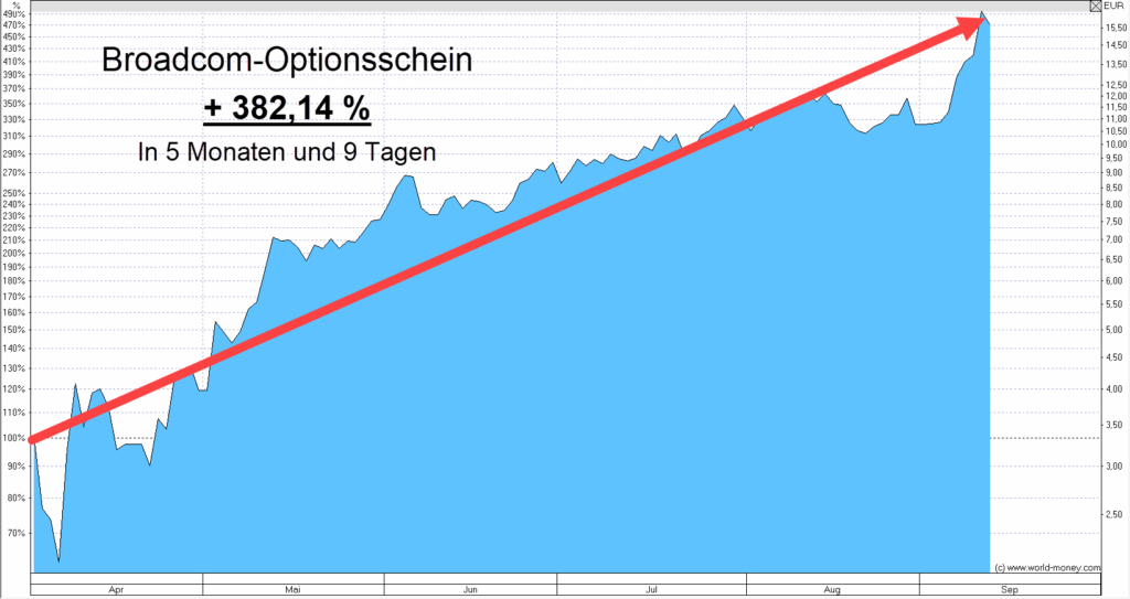 Denn einer der größten Volltreffer unserer letzten Runde, war der Broadcom-Optionsschein.
